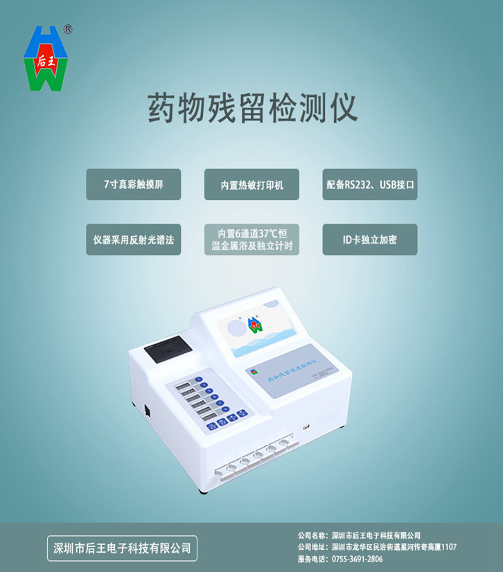 農(nóng)業(yè)監(jiān)督檢測方案深圳市后王電子科技有限公司專業(yè)生產(chǎn)食品安全檢測儀器、提供全套的農(nóng)業(yè)監(jiān)督檢測方案以及實(shí)驗(yàn)室整體規(guī)劃,實(shí)驗(yàn)室體系建立。 檢測范圍:食品色素、病害肉、重金屬、蛋白質(zhì)、粗蛋白、茶多酚、甜蜜素、安賽蜜、吊白塊、二氧化硫、二氧化氯、過氧化氫(雙氧水)、過氧化值、食用油酸價(jià)以及其他食品安全有毒有害物質(zhì)項(xiàng)目進(jìn)行快速檢測。